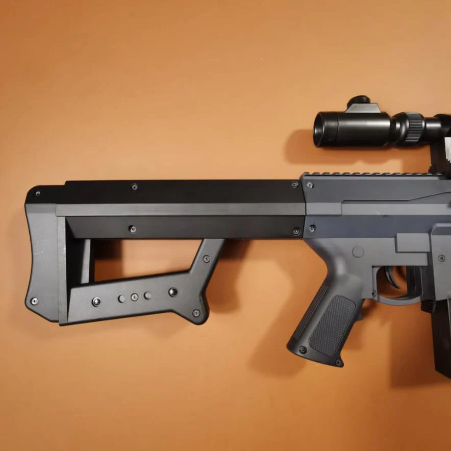 - Auténtico diseño a escala 1:1: Replica la formidable presencia del Barrett M82A1, añadiendo un nivel de realismo e intimidación a tu arsenal.