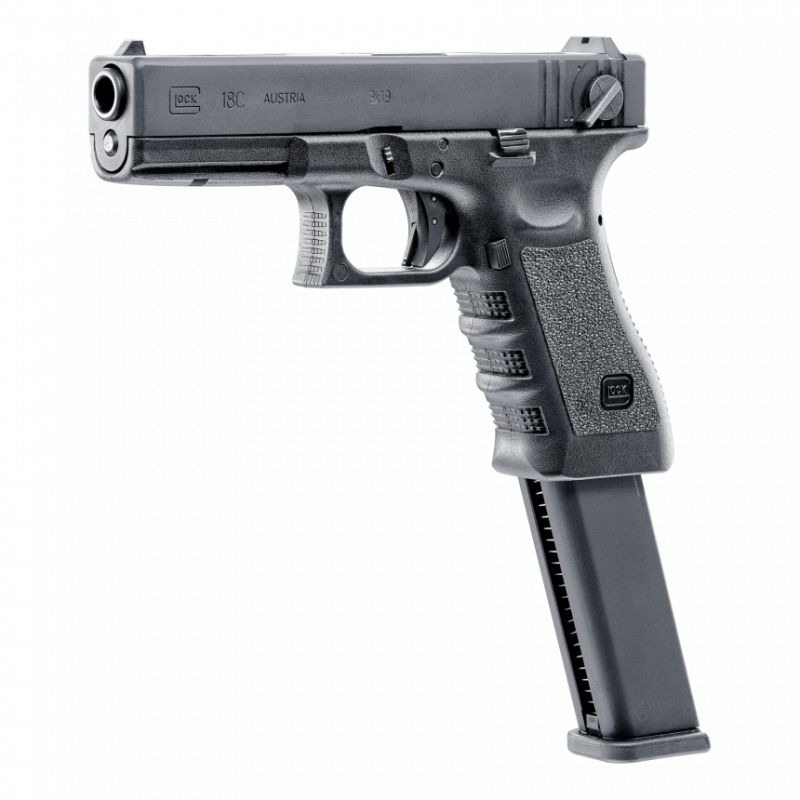 Se trata de una réplica accionada por gas de la pistola más popular del mundo, en versión con selector de tiro: Glock 18C. El cuerpo de la pistola es de polímero, mientras que la culata, el cañón exterior y el cargador son de metal. En la pistola y el cargador se han aplicado marcas con licencia Glock. La principal característica de la Glock 18C que la distingue de otros modelos de esta marca es el selector de fuego integrado situado a la izquierda de la culata.