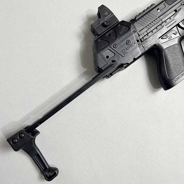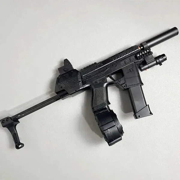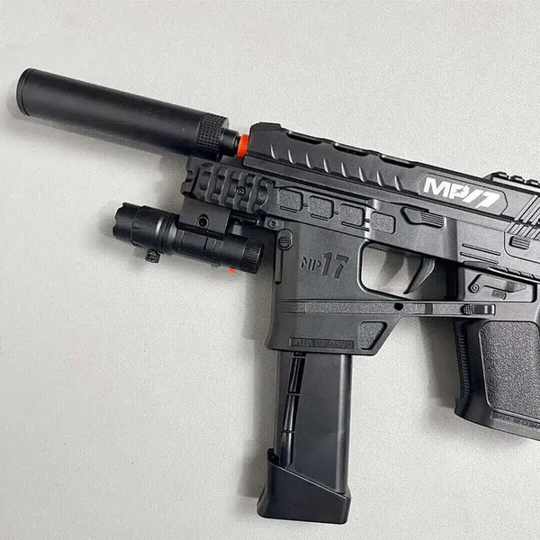 Experimenta simulaciones de batalla intensas y realistas con el MP17 Pistola de Hidrogel. Esta versión táctica de la pistola de hidrogel MP17 viene con dos cargadores, incluido un tambor para un juego prolongado. Cambie fácilmente entre los modos de disparo semiautomático y completamente automático y personalice su desintegrador con accesorios extraíbles. Con un alcance de disparo de 20 metros y una potencia de fuego de hasta 180 FPS, este blaster es perfecto para enfrentamientos de largo alcance.